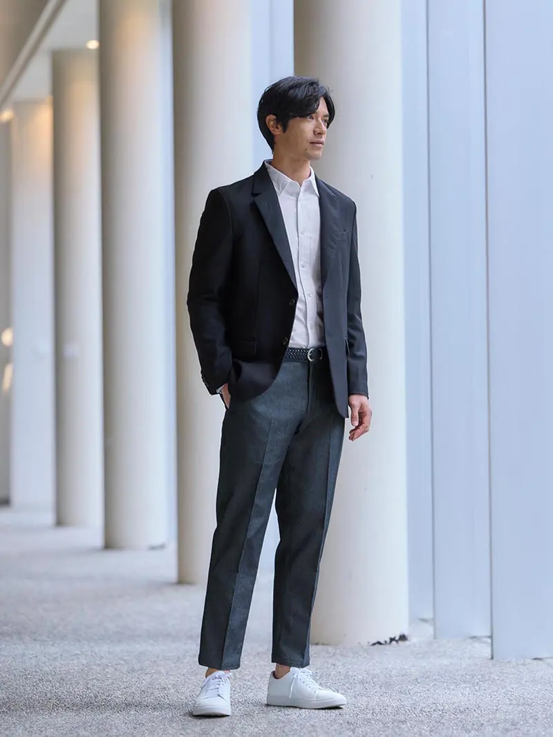 ジャケットを上手に着こなすことで、よりスタイリッシュで落ち着いた印象を与えることができます。ジャケットの色や素材(今回は夏のシアサッカー素材を使用)は、季節やシーンに応じて変えることで、より自分らしいスタイルを表現することができます。