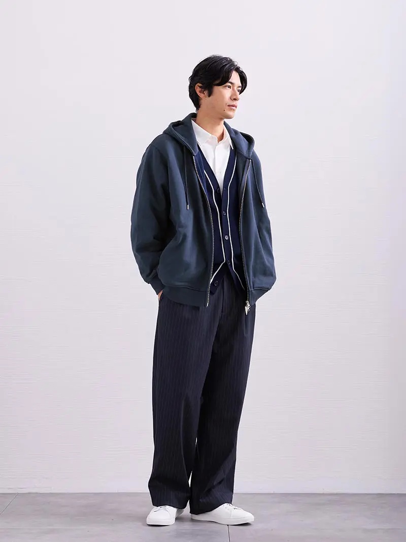 カジュアルなフーディーはゆったりシルエットを選ぶことで、ライトアウターとしてもお使い頂けます